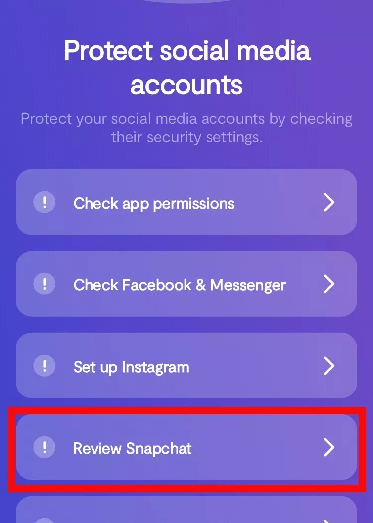 Stap 3: Stap: Selecteer Sociale media-accounts beschermen.