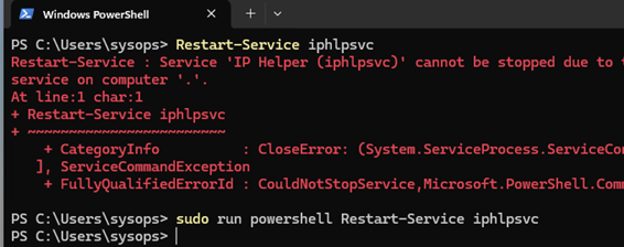 sudo powershell "Restart-Service iphlpsvc"