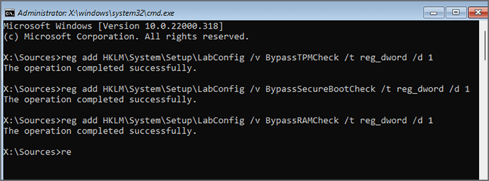 Typereg voeg HKLMSystemSetupLabConfig /v BypassSecureBootCheck /t reg_dword /d 1 toe