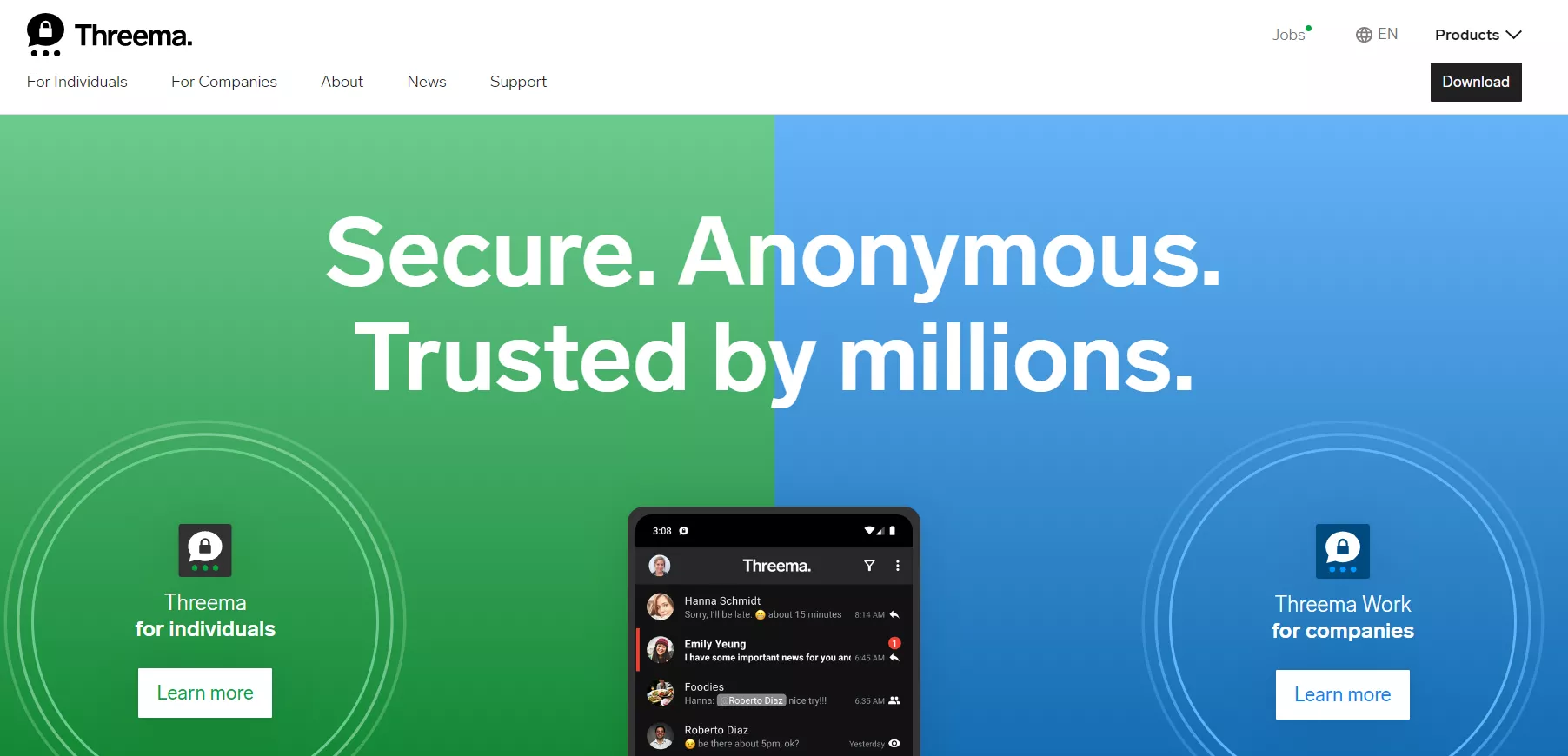 Threema is een in Zwitserland gevestigd bedrijf dat een veilige chat-app voor particulieren en bedrijven heeft gemaakt. Het biedt aanpasbare functies zoals tekstopmaak en lichte en donkere thema's, stelt gebruikers in staat groepspeilingen en chats te maken en maakt anonieme communicatie mogelijk.