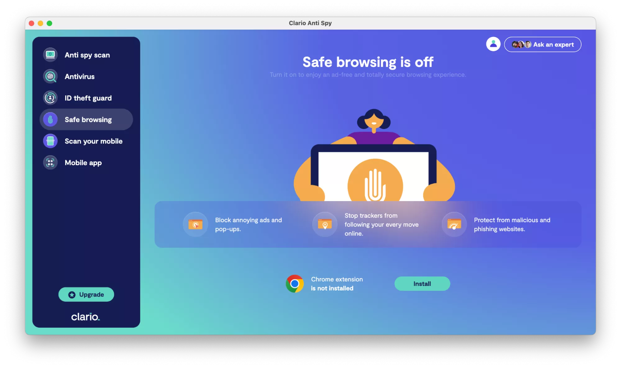 Cyberbeveiligingssoftware: Een speciale beveiligingsapp, zoals Clario's Anti-Spy, kan aanvallers detecteren en tegenhouden voordat ze schade aan u en uw apparaat toebrengen.