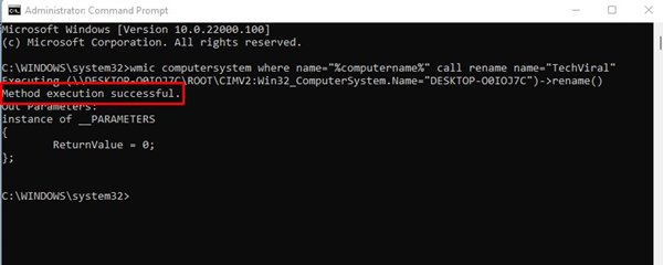 3. De opdrachtprompt geeft het succesbericht weer. Het zou moeten worden weergegevenMethode-uitvoering succesvol.