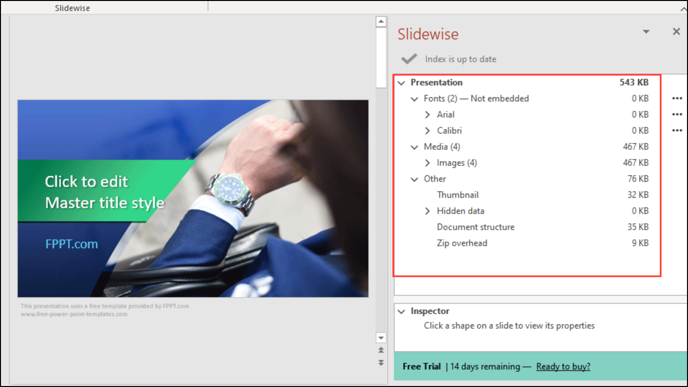 Speciale PowerPoint-invoegtoepassingen zoals Slidewise bieden geavanceerde opties voor het inspecteren, exporteren en beheren van ingebedde media. Deze tools geven gedetailleerde informatie weer over elk asset, inclusief bestandsgrootte, type en gebruik, zodat u snel grote of overtollige bestanden kunt identificeren en exporteren. Sommige invoegtoepassingen ondersteunen ook batchbewerkingen, waardoor u tijd bespaart bij het verwerken van veel bestanden.