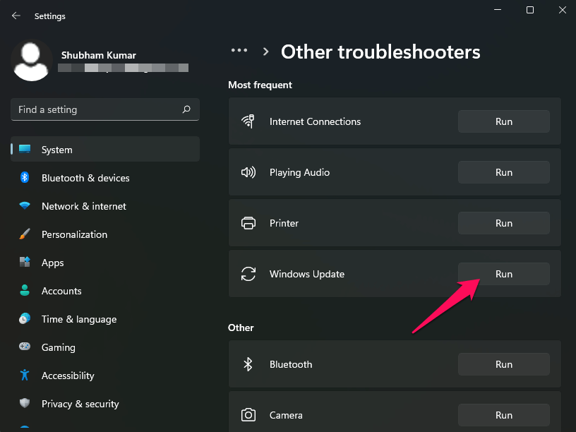3. Klik nu opLoop, overeenkomend met deProbleemoplosser voor Windows Update.