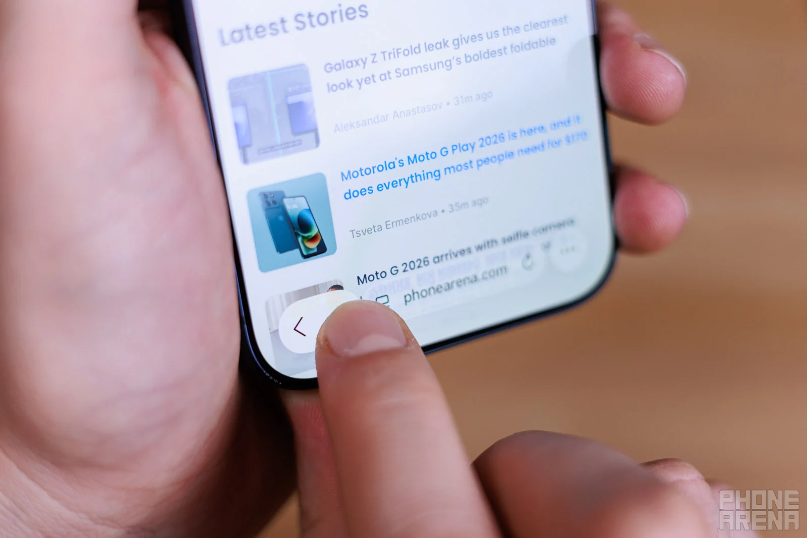 Op zichzelf is dat een ergernis voor iedereen die ervan houdt dat de interface constant en consistent is. Maar dan is er ook de enigszins irritante UI-feedback wanneer je op een van de pijlen tikt. Je ziet nooit duidelijk op welke knop je hebt getikt. Wanneer u bijvoorbeeld op ‘vooruit’ drukt, springt de hele druppel Liquid Glass waarin beide knoppen zijn ondergebracht omhoog, zonder ‘gewicht’ om u te laten zien aan welke kant u hebt gedrukt.