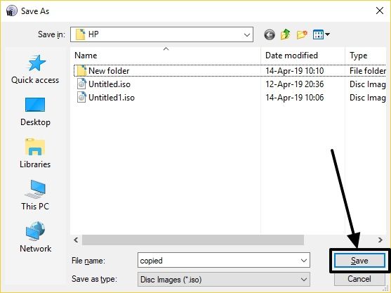 Stap 5: Tenslotteselecteer de locatie waar u het ISO-bestand wilt opslaan en de bestandsnaam van het ISO-bestand. Klik ten slotte op'Redden'om de compilatie op te slaan.