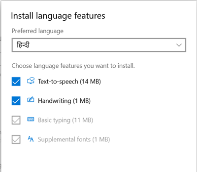 Kies de taalfuncties die u wilt installeren. Als u niet van plan bent sommige van de taalfuncties die daar worden weergegeven te installeren, schakel dan het vakje uit dat bij deze opties staat en druk op de knop 'installeren' knop.