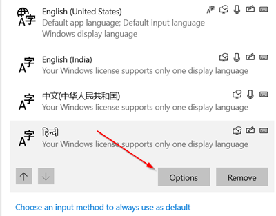 Eenmaal geïnstalleerd, ga naar deWindows-weergavetaalsectie, selecteer de taal en kies 'Opties'.