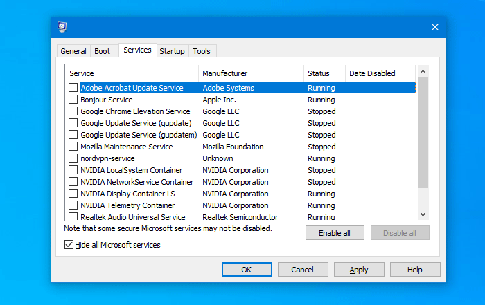 Soms treedt dit probleem op vanwege een defect stuurprogramma of hardware. Dat herken je door een Clean Boot uit te voeren. Het is eenvoudig en u hoeft ook geen software van derden te installeren.en kijk of het probleem daar blijft bestaan. Ter informatie: het lost het probleem niet rechtstreeks op, maar het helpt u er zeker van te zijn dat het probleem zich voordoet vanwege een conflicterende toepassing of service van derden.