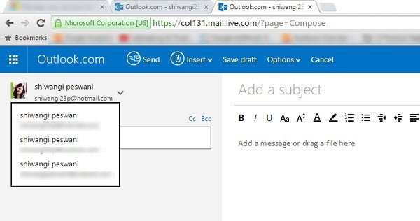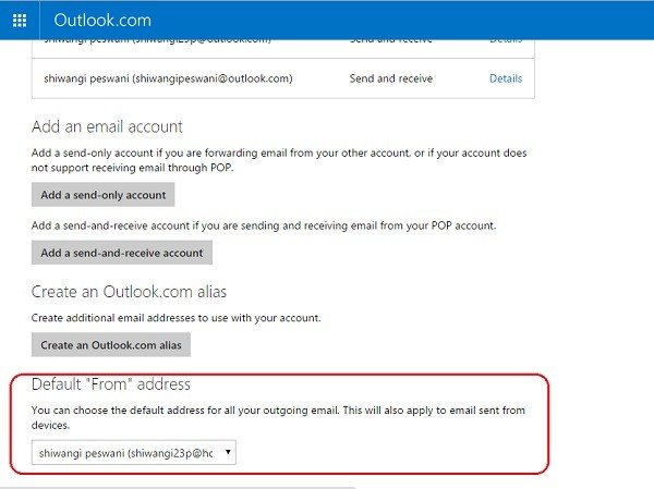 - U kunt ook al uw bestaande Microsoft-e-mailadressen toevoegen als uw nieuwe alias in Outlook.com of Outlook.in.