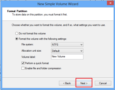 Als u gegevens op deze partitie wilt opslaan, moet u deze eerst partitioneren. Formatteer dus departitiemet NTFS.
