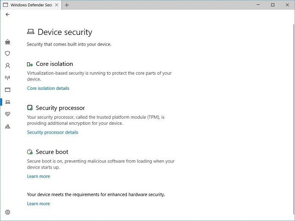 Open Windows Defender Beveiligingscentrum en klik op Apparaatbeveiliging.