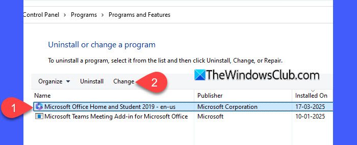 Klik met de rechtermuisknop op Microsoft 365 of Office (de naam varieert afhankelijk van uw versie) en selecteerWijziging. Je ziet twee opties. Ofwel selecterenSnelle reparatieofOnline reparatieen klik vervolgensReparatie. Voltooi de instructies op het scherm om Excel te repareren.