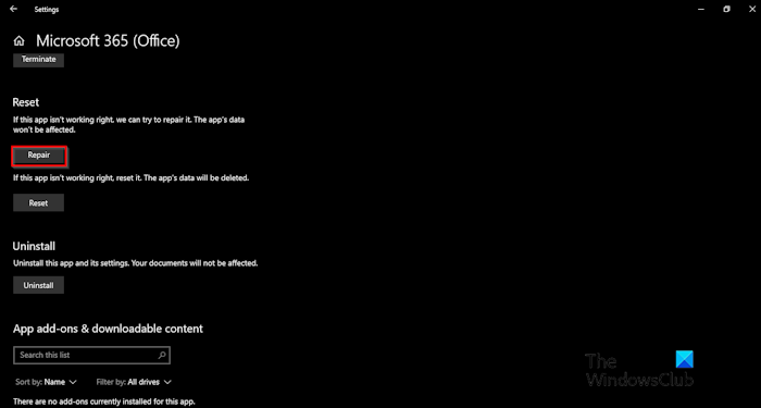 KlikMicrosoft 365 (Kantoor)en klikGeavanceerde opties.