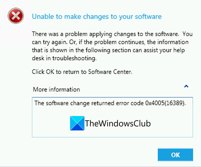 In deze handleiding gaan we bespreken hoefout 0x4005(16389) oplossen bij het upgraden van Windows. Verschillende gebruikers hebben deze foutcode naar verluidt ondervonden tijdens het uitvoeren van een interne upgrade naar Windows 11/10. De foutcode zegt “Kan geen wijzigingen aanbrengen in uw software'-bericht gevolgd door een lang foutbericht wanneer het wordt geactiveerd.
