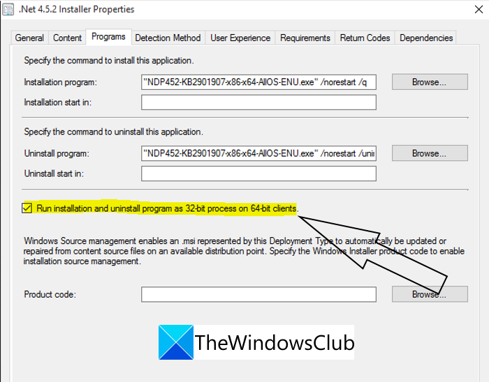 Deze oplossing is met name van toepassing opAlleen .NET-implementatie. Als u een fout tegenkomt bij het implementeren van een .NET-framework op verschillende computers, kan de foutcode worden geactiveerd omdat programma's in de 32-bits modus worden uitgevoerd op een computer met 64-bits architectuur. Als dit scenario van toepassing is, kunt u een specifiek selectievakje in de eigenschappen van het installatieprogramma gebruiken om het programma als een 32-bits proces op 64-bits clients te verwijderen. Hier zijn de stappen die u moet volgen om dit selectievakje in te schakelen:
