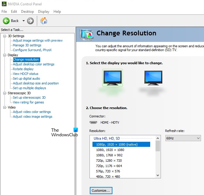 Als je dat bentProbeer via de Windows 11/10-instellingen de resolutie en schaling te wijzigen via het configuratiescherm van uw grafische kaart. Voor enkele grafische kaarten hebben we de stappen uitgelegd.