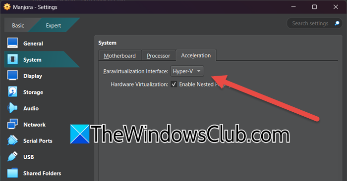 - Stel deParavirtualisatie-interfacenaarHyper-V.