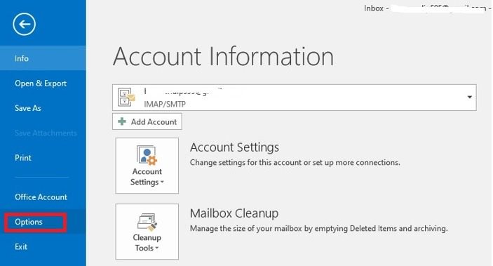 - Klik opBestand > Opties.