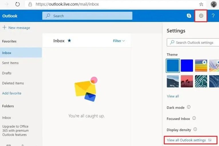 - Klik opBekijk alle Outlook-instellingenoptie rechtsonder.