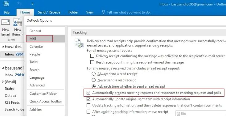 De Outlook-applicatie biedt de mogelijkheid waarmee we de gebeurtenisinstellingen kunnen wijzigen om ervoor te zorgen dat gebeurtenissen niet automatisch aan het Outlook-mailaccount worden toegevoegd door de onderstaande stappen te volgen: