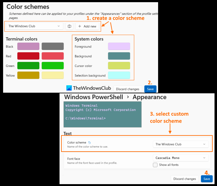 Er zijn twee manieren om het kleurenschema voor een Windows Terminal-profiel op een Windows 11/10-computer te wijzigen: