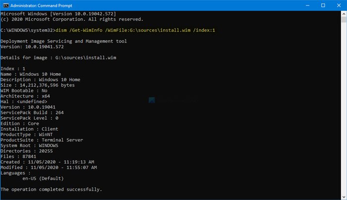 dism /Get-WimInfo /WimFile:G:\sources\install.wim /index:1