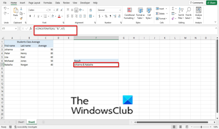 InMicrosoftExcel, Concatenate is een tekstfunctie en het doel ervan is om twee extra tekstreeksen te combineren in één tekenreeks. DeConcentreren-functie kan de manier verbeteren waarop uw gegevens in uw spreadsheet worden uitgelijnd, vooral als u de gegevens wilt samenvoegen.