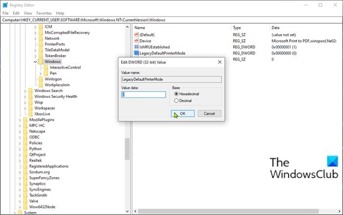 - Stel de Waardegegevens in op1om handmatig de standaardprinter te kiezen (zoals in eerdere versies van Windows), of om0(of schakel het uit) zodat Windows de standaardinstellingen kan wijzigen.