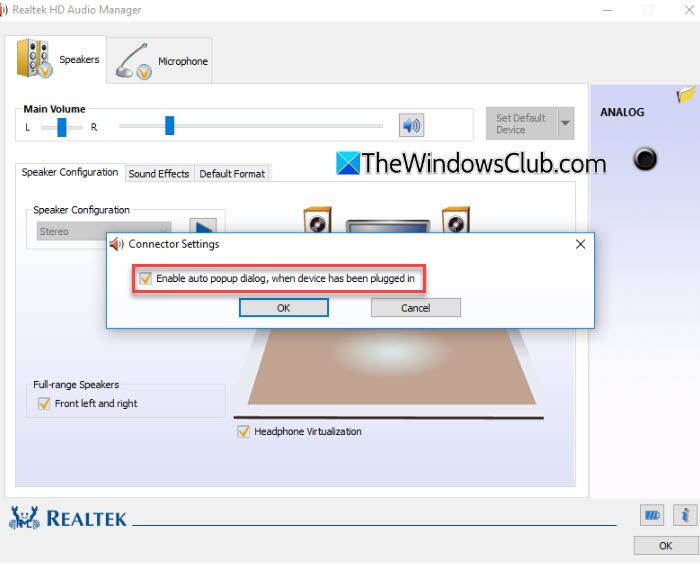 Nieuwere Realtek UAD-versies (Universal Audio Driver) en aangepaste OEM-audiosoftware schakelen deze optie vaak uit of vervangen deze om het audiobeheer te stroomlijnen. Deze software is afhankelijk van automatische apparaatdetectie, daarom zijn de'Welk apparaat heb je aangesloten?'pop-up verschijnt niet meer in Windows 11.