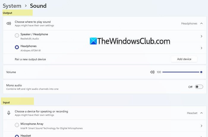 Als u deWelk apparaat heb je aangesloten?pop-up voor eenvoudig schakelen tussen audioapparaten op uw Windows 11-pc, dit bericht kan helpen.