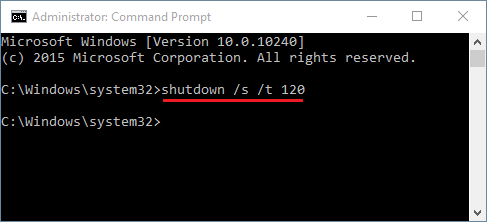 - Ved å bruke shutdown-kommandoen kan du stille inn datamaskinen til automatisk å slå seg av etter den tiden du har spesifisert. For eksempel, hvis du vil slå av datamaskinen nøyaktig etter 120 sekunder, skriv inn kommandoen som følger: