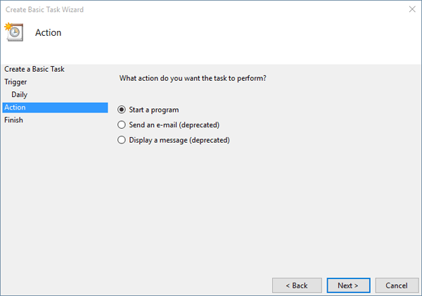 - Velg alternativknappen "Start et program" og klikk på Neste.