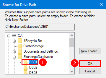 Gå til stienC:ExchangeDatabaserog velg mappeDB01. KlikkOK.