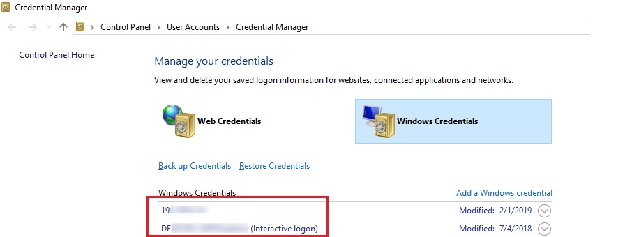 Hvis problemet bare oppstår når du får tilgang til NAS-ressursen eller Samba-serveren på Linux, kan du prøve å lagre tilkoblingslegitimasjonen (brukernavn og passord som brukes til å koble til SMB-ressursen) tilWindows Credential Manager(KontrollpanelAlle kontrollpanelelementer Credential ManagerWindows Credential eller kjør kommandoencontrol.exe keymgr.dll).