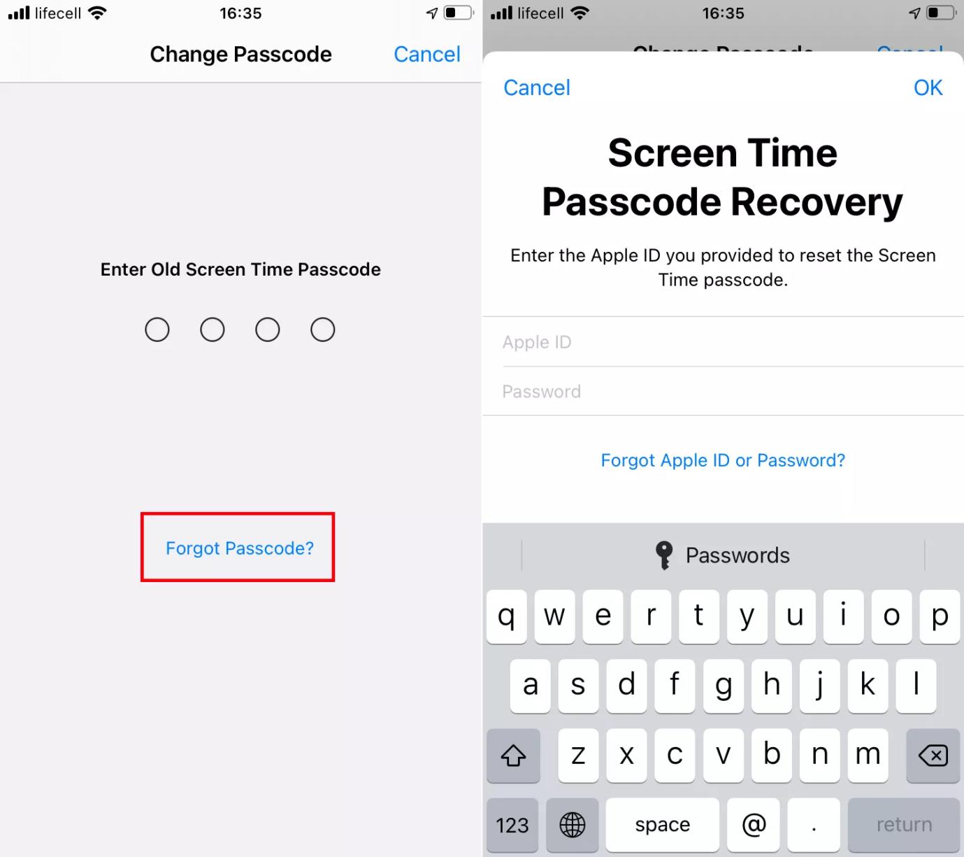 En annen enkel måte å deaktivere begrenset modus på iPhone eller iPad hvis du ikke har passordet til skjermtiden din, bør du vurdere å endre passordet. For å gjøre dette trenger du Apple ID-detaljene knyttet til enheten med begrenset modus, og det fullføres vanligvis via innstillingspanelet. Men husk, bare enheter som opererer på iOS13.4eller senere kan bruke denne metoden.