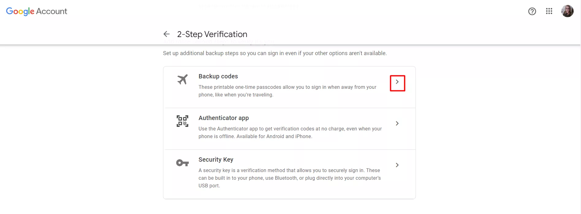 Du kan bruke andre 2FA-metoder som lar deg logge inn på dine forskjellige personlige kontoer. En slik metode er Google backup-koder. Dette kan gi deg tilgang til Google-kontoen din selv om du ikke får tilgang til Google Authenticator.