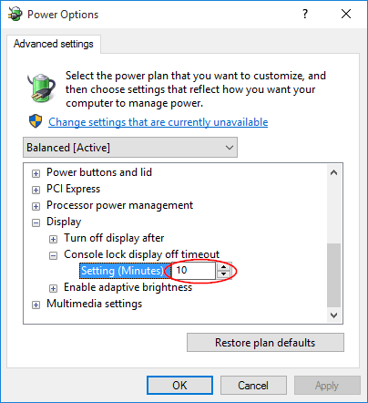 - Umiddelbart etter at du har redigert registeret, vil du se et nytt alternativ (Tidsavbrudd for skjerm av konsolllås) for å justere i de avanserte strøminnstillingene for strømplanen din.