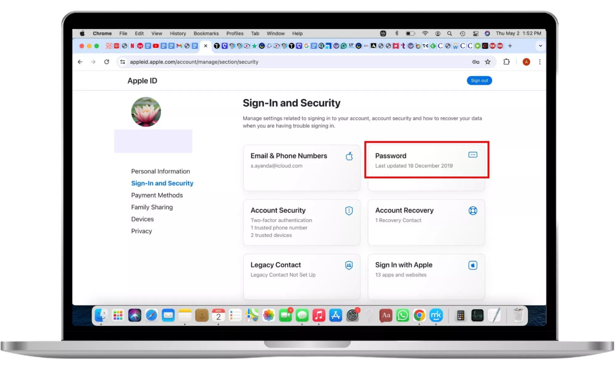 Trinn 1. Logg på kontoen din og klikk på Pålogging og sikkerhet > Passord.