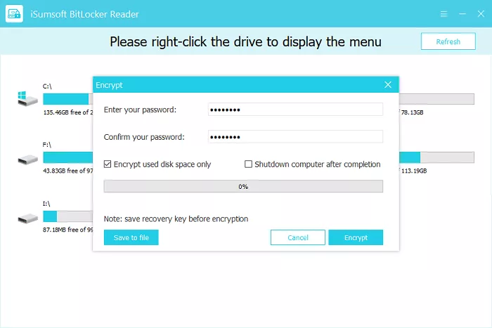 Løsning 2: Slå på full-diskkryptering ved hjelp av iSoft BitLocker Reader
