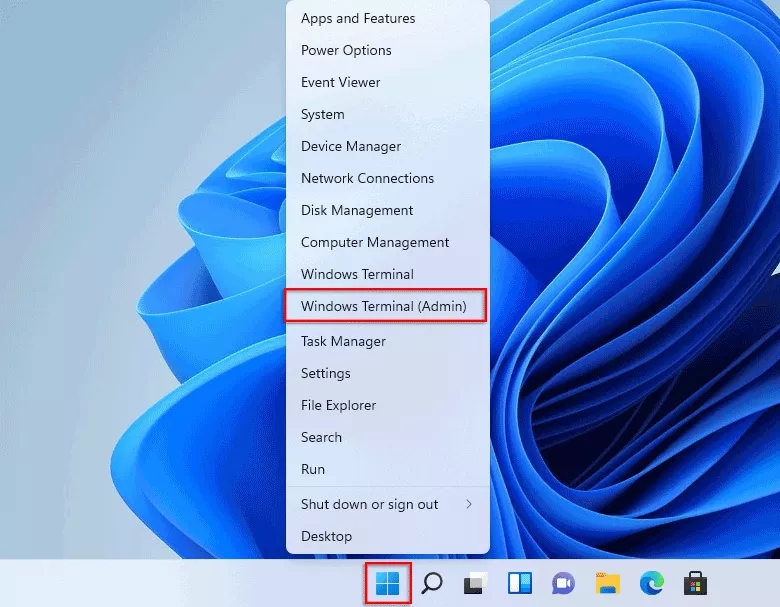 Trinn 1:Høyreklikk påVinneikonet og velgWindows-terminal (admin).