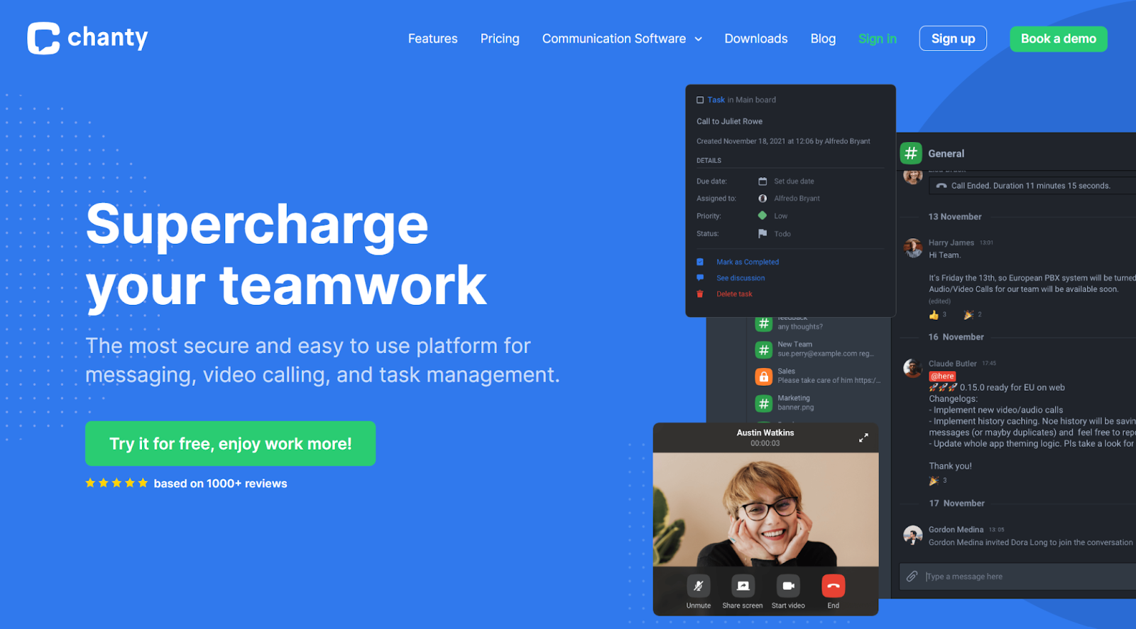 Chanty er utmerket for oppgavehåndtering og teamkommunikasjon, selv om gratisversjonen er noe begrenset, og den tilbyr færre integrasjoner.