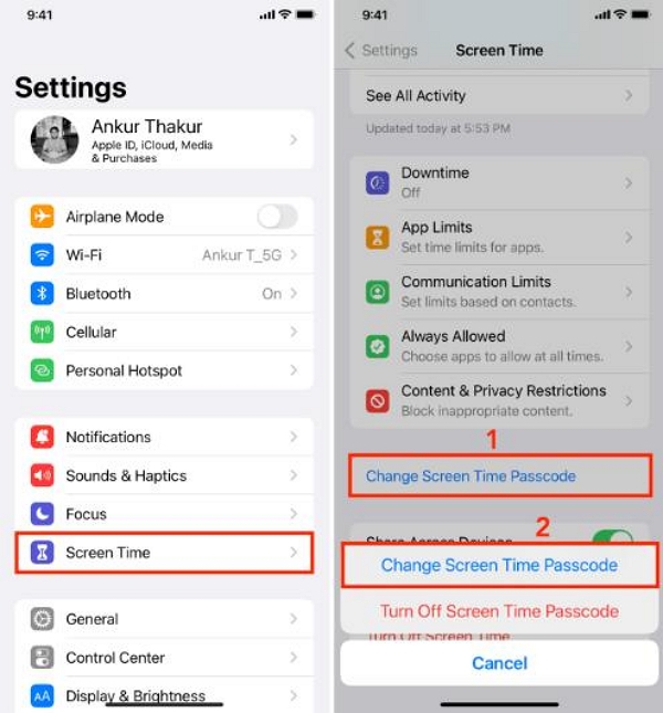 Hvis aktivering av "Kontoendringer"-alternativet i skjermtid ikke løser den nedtonede Apple-ID-en, kan du prøve å slå av skjermtiden helt. Følgende trinn forklarer prosessen: