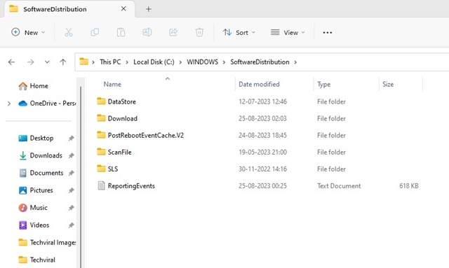 4.Slett alle filer og mappertilgjengelig i SoftwareDistribution-mappen.