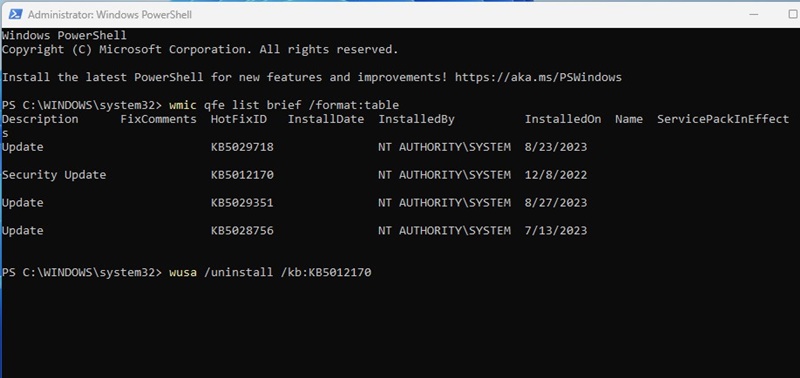 Hvis du ikke kan avinstallere spesifikke Windows 11-oppdateringer, bruk PowerShell-verktøyet.