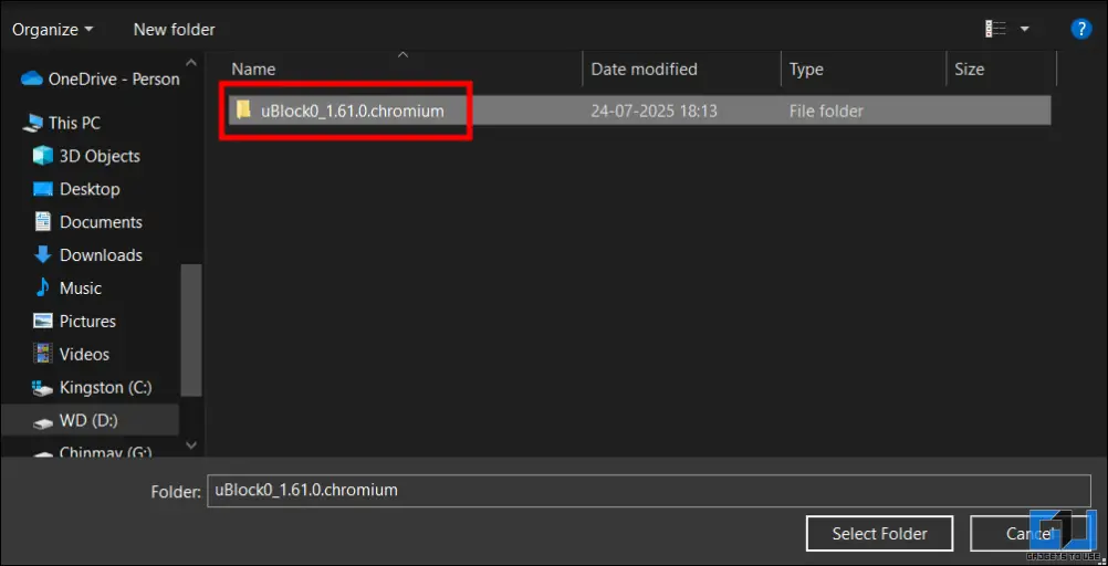 4.Last ned den nyeste versjonen av uBlock for Chromium fraGitHub-sidenved å rulle nedover eiendeler. Sørg for at du laster ned Chromium-varianten, siden vi installerer den i Chrome. Pakk ut denne zip-filen.