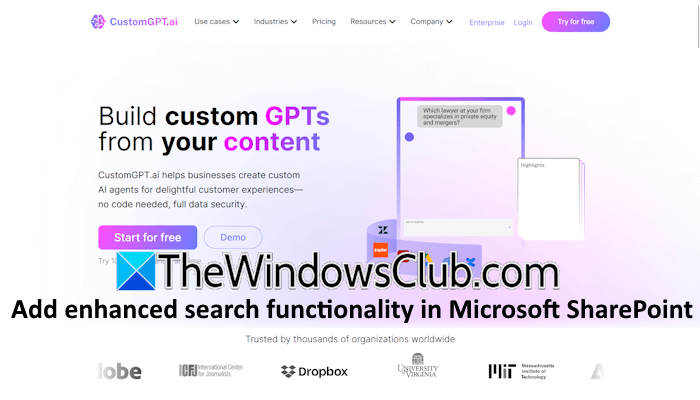 Legg til en forbedret søkefunksjonalitet i Microsoft SharePoint med CustomGPT