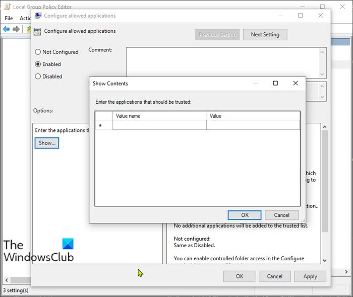 Hviteliste apper i kontrollert mappetilgang ved å bruke Local Group Policy Editor