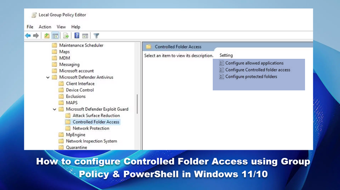 Det handler om hvordan du konfigurerer kontrollert mappetilgang ved hjelp av gruppepolicy og PowerShell i Windows 11/10!