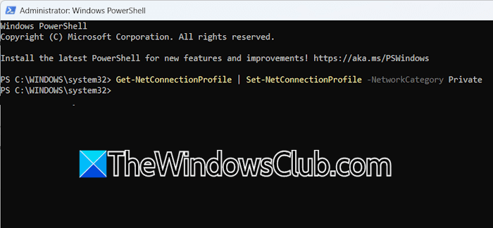 Du kan også prøve å kjøre en kommando i Windows PowerShell for å endre nettverksprofilen din.